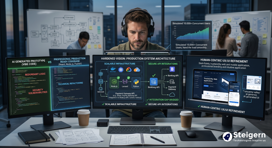 For clients, this gap manifests as “Vibe Coding issues” bugs that feel ephemeral, features that look right but don’t work, and architectural debt that accumulates before the first user even signs up. This is where the synergy between visionary clients and seasoned developers becomes the ultimate competitive advantage.