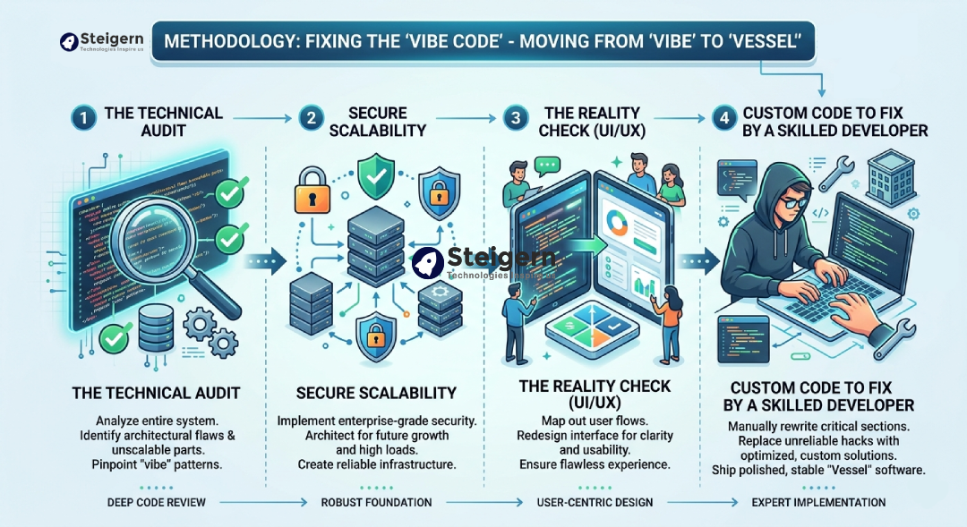 When a client brings a project born from Vibe Coding to a professional team, the goal isn’t to start over. It’s to harden the vision. Here is how developers are helping clients navigate this new era: